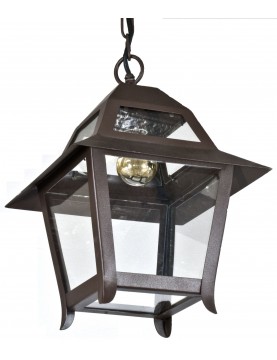 Lanterne à suspendre fer forgé modèle Les Sables éclaire votre garage ou votre grange en décorant celui ci dans une ambiance du XIXème siècle. Cette lanterne à suspendre est livrée en coloris noir RAL 9005 ou patine naturelle sans supplément.