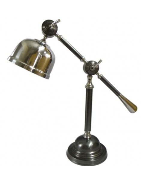 Cette lampe de bureau pourra très bien se poser sur un bureau industriel ou sur une console, son abat jour chromé diffusera une lumière chaleureuse.