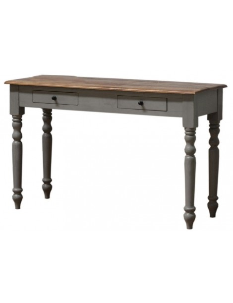Cette console avec 2 tiroirs fabriquée en bois de manguier plateau finition naturelle, structure, tiroirs pieds coloris gris